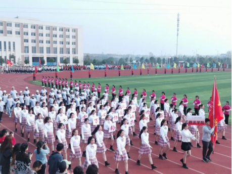 首先入场的是国旗护卫队,随后武汉文理学院校徽、校训、鲜花队、彩旗方阵,各学院代表队一一入场,今年的运动会与往年的稍有不同,紧随学生代表队入场的是教职工团。师生一起接受主席台上领导们的检阅。