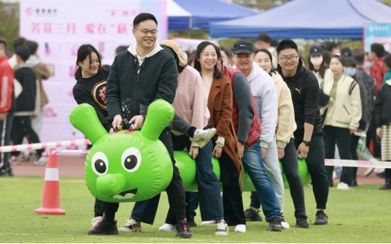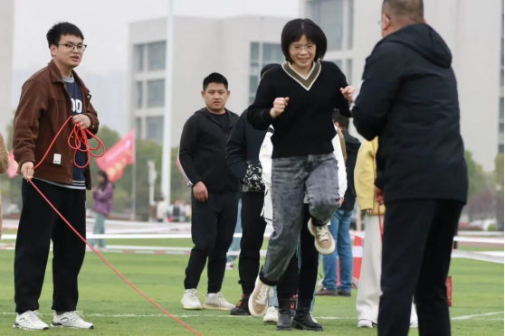 3月29日的活动吸引了全校600余名教职工参加。现场活动丰富多彩、精彩纷呈,拔河、集体8字跳绳、十人九足、“众星捧月”、毛毛虫竞速等项目和各类小游戏集趣味性与竞技性于一体,赛场气氛紧张活泼,喝彩声、欢笑声此起彼伏。