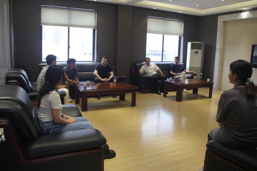 潘红祥一行走访了在各个岗位上专心工作的实习学生,细心询问同学们的具体工作内容,了解大家的工作感受,并与大家集中座谈交流。同学们逐一发言,畅聊工作感想和体会,老师们点评交流,对大家的实习工作和生活提出了针对性的建议与指导。