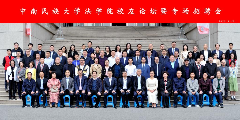4月29日,中南民族大学法学院校友论坛暨专场招聘会在学术交流中心润良报告厅举行。来至全国各地80余位校友代表应邀参会,学校党委常委、副校长杜冬云、有关职能部门负责人及学院师生代表参加会议。会议由学院党委书记祁帆主持。