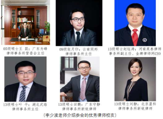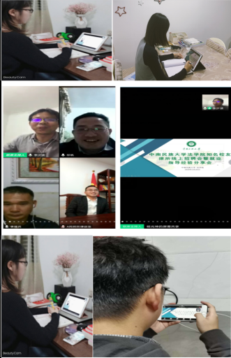 稍事休息之后,刘念(受广东刘志均律所校友刘叠主任委托)、曾晶、王燚、张月印、赵钰涛、叶平、田鹏、七位出色的律师校友就新时代法科生择业的新视野、律所招聘法科生的能力要求、律所如何培养律师助理、年轻律师如何克服初期的工作困难等七个方面带来了满满的干货。曾晶律师和王燚律师提醒毕业生们要放低姿态,要树立法律人思维,保持对法律的敏感,法律是要连接社会的,法律人要将自己融入到社会之中去。张月印律师分享了自己创业的经历,提出专业型律师和创业型律师的观点也让大家对这个行业有更深入的理解。叶平律师谈到了法律人应有的品质和能力,赵钰涛律师更是给出了实习律师的六大必修课,刘念律师从实际出发,提醒我们入行有风险,要根据自己实际情况选择职业,田鹏律师更是直接分享了自己就业初期的种种痛苦,用幽默的语言告诉我们要面对困难,化解痛苦,要注重写作能力的培养。 14位校友通过两个多小时的时间,将他们在律师行业摸爬滚打多年的职业经验和人生态度与在线聆听的各位同学分享,并都表示愿意接受民大的法科生前往求职或者实习,愿意尽力帮助指导学弟学妹们。针对前期搜集的毕业生们对律所求职具体事项的疑问,校友们都通过文字一一详细解答,经过整理后通过文档形式反馈给毕业生。 会议末尾,王琼副书记再次代表学院向热心校友们和积极联络筹备本次空中招聘会的李少波老师表达了真挚的谢意。并希望毕业生们勇敢的打破自己的思维禁锢,迈出求职的第一步;希望低年级学生及早认清自己,做好规划,付诸行动,实现自己从0到1的蜕变。