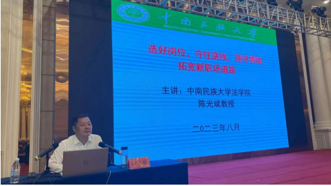 应湖北省退役军人事务厅的邀请,为帮助军队退役军官增长知识,拓宽视野,为下一步到地方工作打下良好的基础。8月19日,全省高校“双带头人”教师党支部书记工作室,学院公法党支部书记陈光斌教授为湖北省2023年军队退役军官做了题为《选好岗位,守住底线,理好情绪,拓宽新职场道路》的授课。